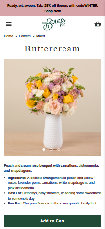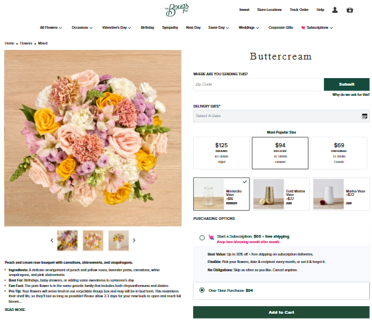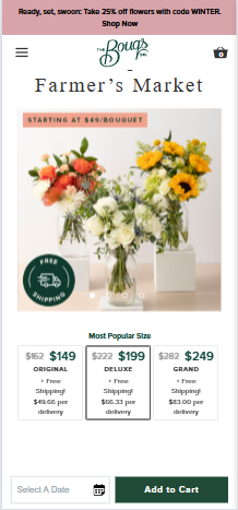 Traditional flower delivery suffers from complex supply chains, inconsistent freshness, limited personalization, and poor checkout experiences. The Bouqs Company needed a scalable D2C platform that could support farm-direct sourcing, flexible delivery scheduling, subscriptions, and strong brand storytelling — while keeping the buying experience simple and premium.
